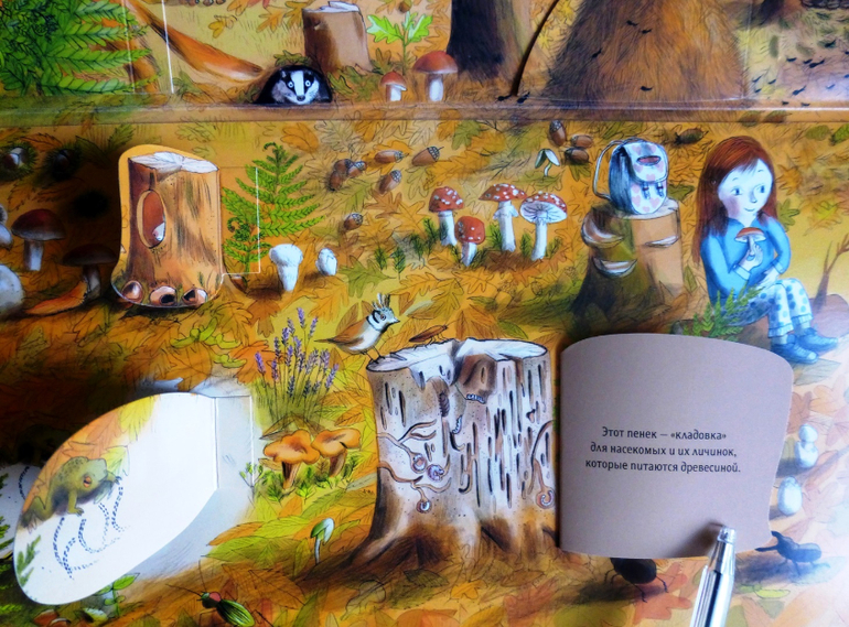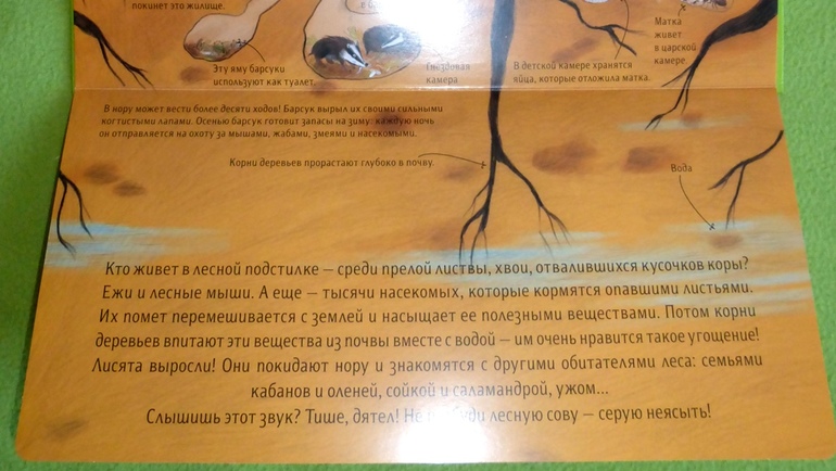 Заглянув в лес, мы узнаем, кто живет в лесной подстилке и чем питаются корни деревьев. Увидим норы животных под землей. Узнаем, чем они питаются и как живут. Особенно интересен огромный город-дом муравьев с множеством этажей, соединенных сложной сетью переходов.
