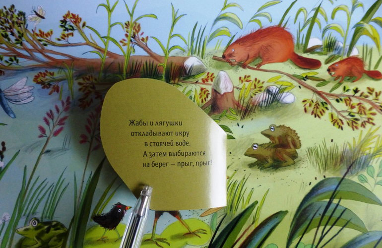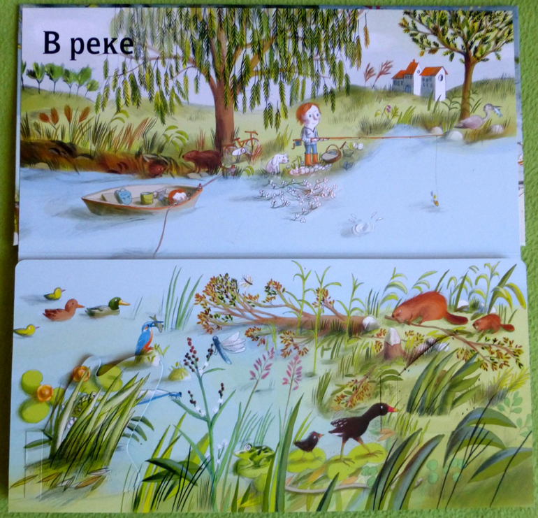 Изучая речной пейзаж, малыши узнают, что в пресной воде обитают не только рыбы, но и водоросли, моллюски, раки. Узнают, как из яица комара или из лягушачьей икры развиваются личинки и головастики. Увидят, как на берегу бобры строят себе дом, а нутрия роет нору.