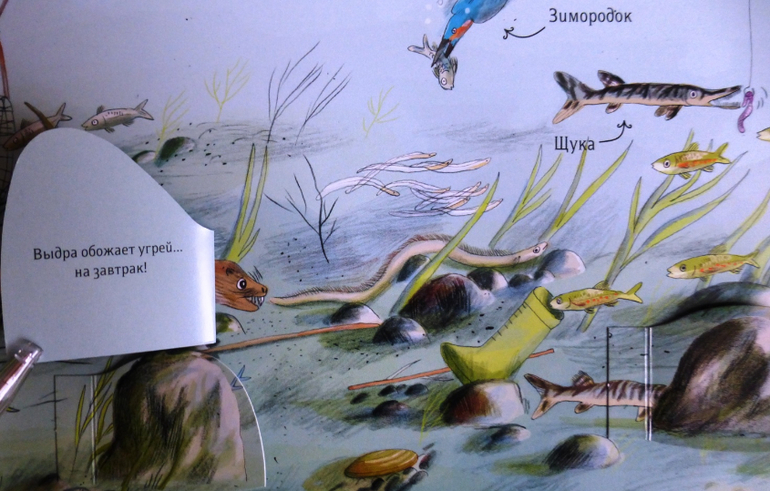 Книгу можно рассматривать, можно читать и играть, изучать, что находится в глубине речных вод, на морском дне, в недрах горы, под камнем, за кустом, под грядками и вместе с малышом совершать чудесные открытия.