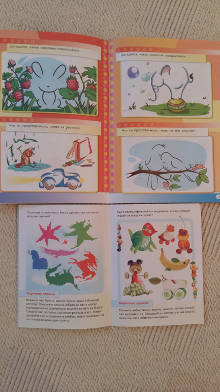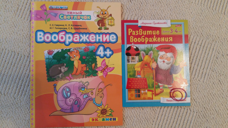 Развитие воображения тоже очень важно и для развития речи,и для мышления.Умный светлячок очень хорошие пособия,если увидите присмотритесь,я заказывала на лабиринте,но сейчас их там почему-то нет.Книжечка от Хатбер на 8 стр можно взять как дополнение,цена невысокая,но качество так себе.Вообще для дороги книжечки от хатбер хорошие,присмотритесь к ним.Лабиринт