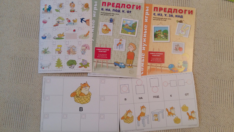 В комплект входит: - описание разных вариантов игр; - восемь листов А4 на картоне (со схемами предлогов, картами лото, разрезными карточками).