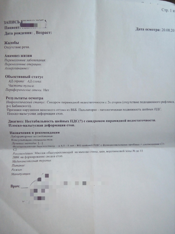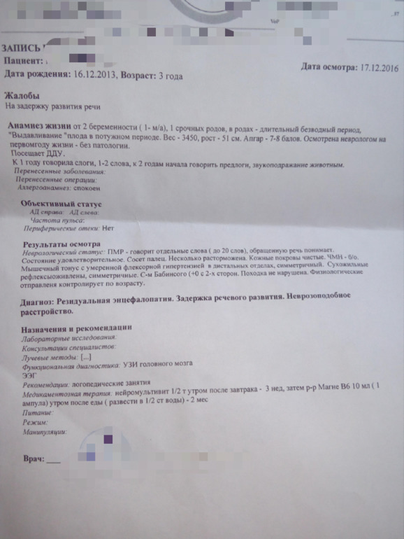 Ближе к 3 годам я потащила её по врачам. Пошли мы к неврологу мужчине в платную клинику. Вот его заключение