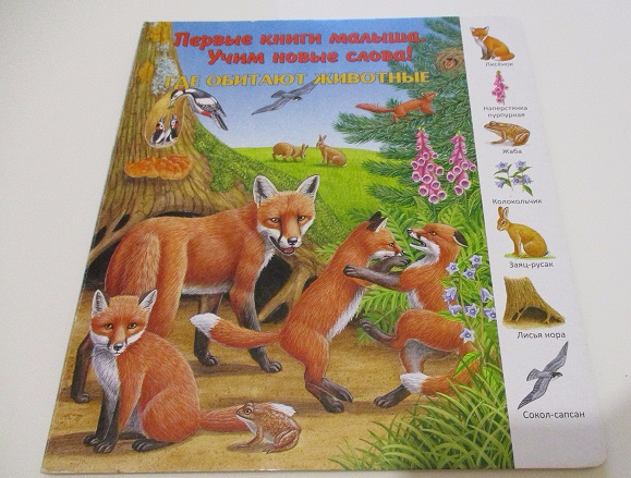 Книга "В Лесу. Мой первый словарик" с 1,5 до 2 лет тоже достаточно часто использовалась. Это книга с окошками (их там не так много - всего 15, но выполнены на отлично) от издательства "Ранок". У нас есть несколько книг этого издательства, они хорошего качества с интересным содержанием и невысокой стоимостью.