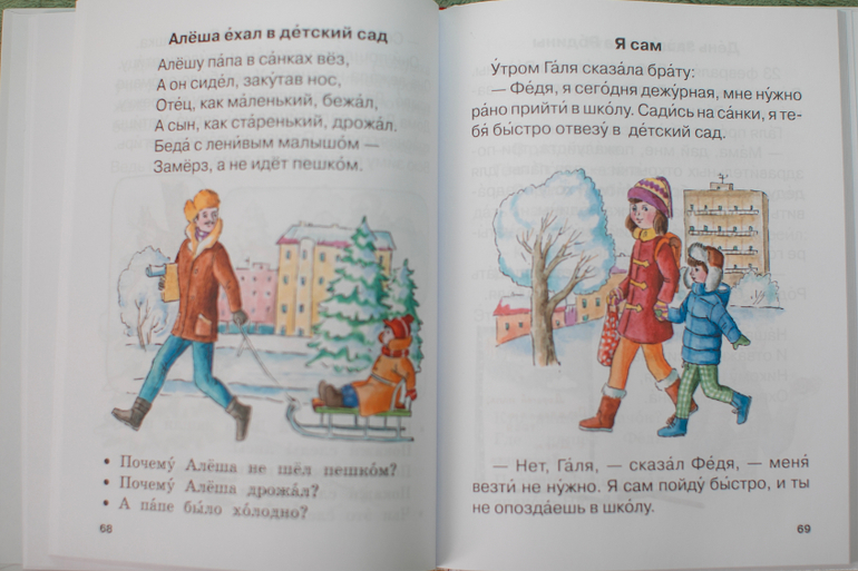 Рассказы в этих книгах короткие и понятные, с ударениями и напечатаны крупным шрифтом. Ребёнку понятен смысл написанного. А также очень радует наличие иллюстрации к каждому рассказу, они делают прочитанный текст ещё более понятным.