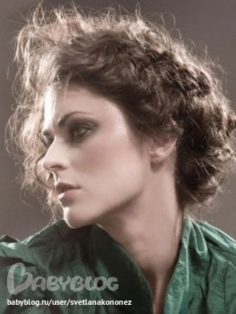 Прическа - лучше полудлинные волосы, которые можно заплетать в объемные косы (около лица нужен объем, который, кстати, и дают вьющиеся волосы) или носить распущенными. Цвет я бы не меняла, при желании можно светлее-темнее на пол тона. Пример причесок (не цвета:)