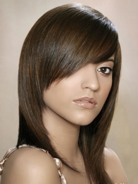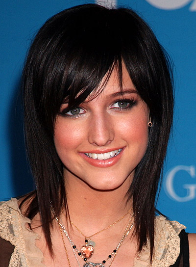 Стрижка подойдет каскадная, с разным уровнем длины волос, а челку и пробор лучше косые. Но, все-таки, чтобы линия среза не была слишком выстриженной, рваной. Цвет можно оставить свой, а если красить, то в темно-коричневые тона. Т.е. в любом случае, цвет волос предпочтительнее оставить темным, и кардинально его не менять. Челку удобнее длинную, чтобы при случае убиралась за ухо:) Стрижки такого плана:
