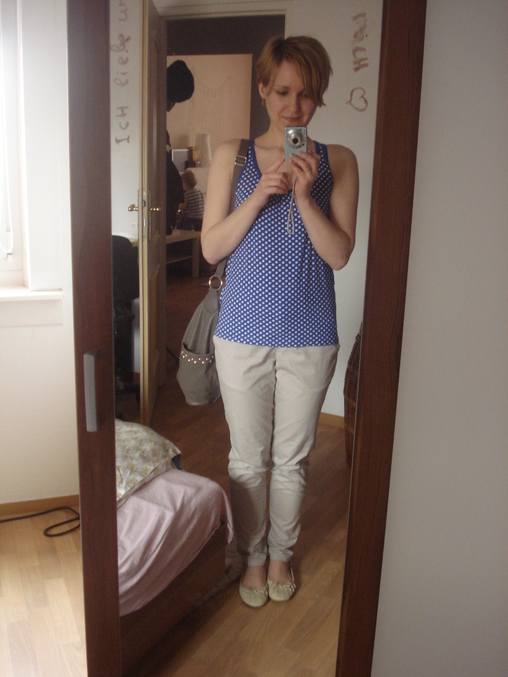 Насколько позволяют увидеть фото (чтобы определить, смотреть нужно ровно в фас:) у Вас овальное лицо с удлиненным подбородком. Т.е. форма лица никакого отношения к кругу не имеет.)) При желании могут быть короткие стрижки (есть одно хорошее правило - чтобы спрятать, нужно открыть). По стилю, я бы остановилась на романтическом кэжуале, но важно и в фасонах одежды и обуви - удлиненная форма (как лицо). Т.е. серьезный романтизм, а не наивная романтика. В комплектах брюки нейтральные (хорошая база), а кофточки "не Ваши": первые две слишком наивно романтические, третья слишком короткая и объемная для Вашей внешности (расцветка и рисунок хорошие), нижняя - немного ярковата, и горох в Вашей одежде не должен быть структурирован. А также, короткие рукава, как на первых двух, зрительно расширяют плечи.