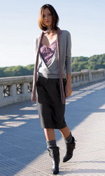 Александра, цветотип у Вас летний, подходящая палитра - холодная, приглушенных тонов. Если нет потребности как-то кардинально изменить внешний образ, то оставьте длинные прямые волосы без челки. Может быть лесенка у лица, небольшая градуировка по нижнему срезу, а вот каскадные стрижки - менее удачный вариант. Мелирование не подойдет, вообще осветлять волосы не стоит. Лучше красить тон в тон, чтобы добавить яркости, или на пол тона-тон темнее, но обязательно в холодные тона.Что касается стиля, сложно описать в нескольких словах; посмотрите образы того, что называют "французским стилем". Там сочетаются классичность, женственность и оригинальность деталей. Выбирайте не контрастные сочетания (а вот какой-нибудь аксессуар может выделяться), силуэты ближе к прямым, и сочетайте разные фактуры в одном ансамбле. Вот одни из возможных  примеров: