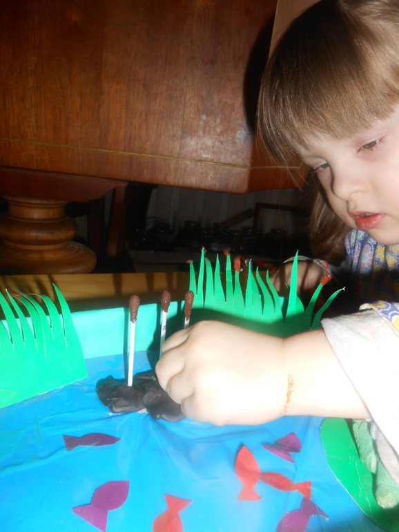 Алисой накануне лепили лягуху и уточек из соленого теста для полноты комплекта
