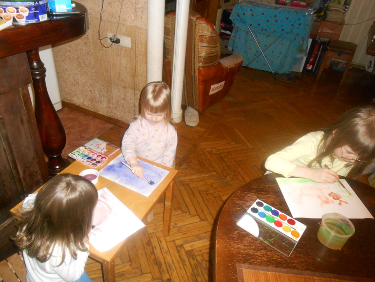 Сегодня утром папа наш, утирая слезы, укатил на гастроли и остались мы без молока для рисования. Если в ближайшие дни мы им обзаведемся, то, непременно натворим еще что-нибудь, чтобы маме было чем заняться одинокими лунными ночами (в смысле, мыть пол и оттирать мебель от последствий. Спасибо автору за доставленное удовольствие!!!