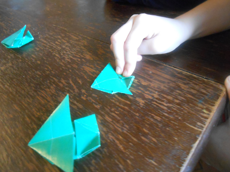 смогла разобраться со схемой оригами. Дошли до 16 шага и вместо лодочки впали в