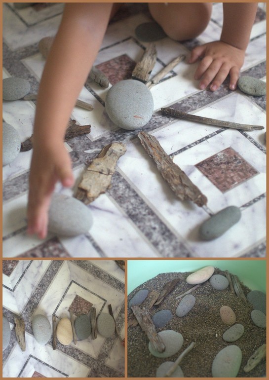 По плану надо было сделать сенсорную коробку из песка, камней, коряжек. Сделали:)