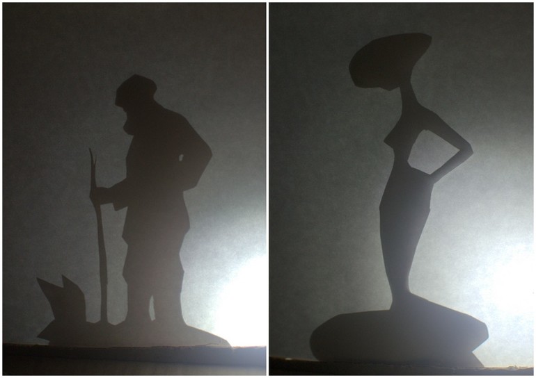 Инсценировали легенду с помощью теневого театра (давно хотела попробовать такой вариант, наспех соорудила, но надо заняться серьезно, т.к. он больше понравился Алисе, чем прежний с помощью рук).