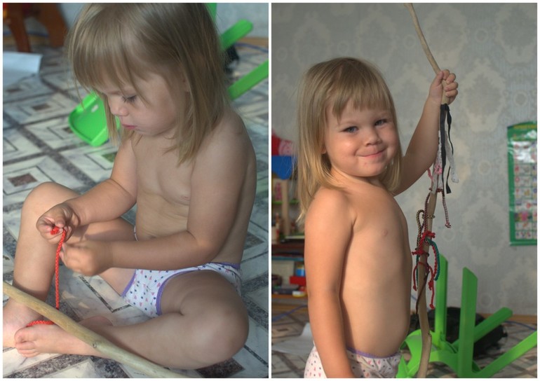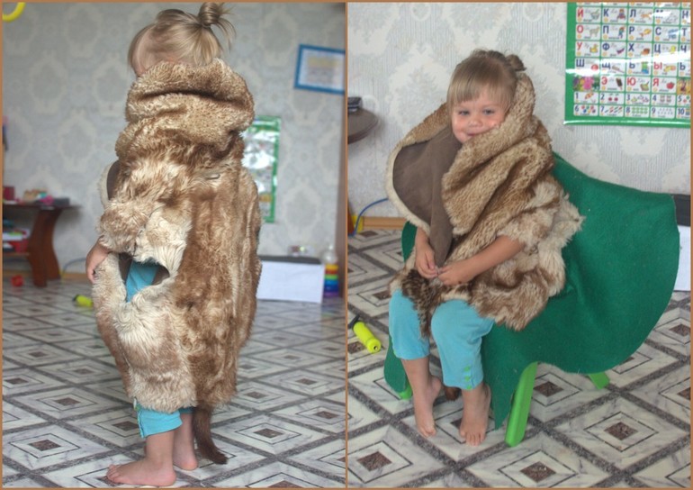 Подвижная игра (ловля соболя) - играли в догонялки, прятались в норку. А еще вот такую игру попрактиковали, но она намного меньше Алисе понравилось. Другое дело - наряжаться в шкурку и догонять:)) мы были по очереди охотником и соболем, причем суть заключалась в отрывании хвостика:)) Правда, Алиса расстраивалась и когда ей отрывали, и когда сама отрывала:)