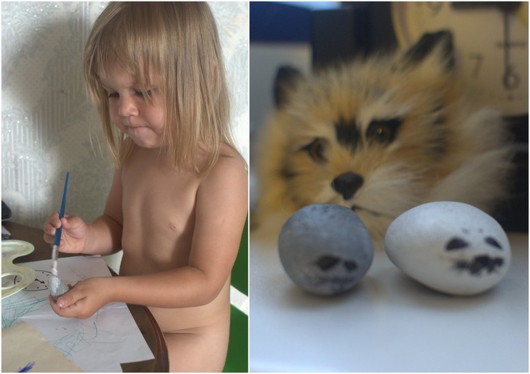 Ушканьи острова известны нерпами. Раскрашивали изначально с Алисой бельков, но когда стали мордочки рисовать, она смешала краску прямо поверх камня, ее белек стал нерпой:) Глазки она "наметила" сама, после чего я помогла ей по возможности усовершенствовать мордочку:)