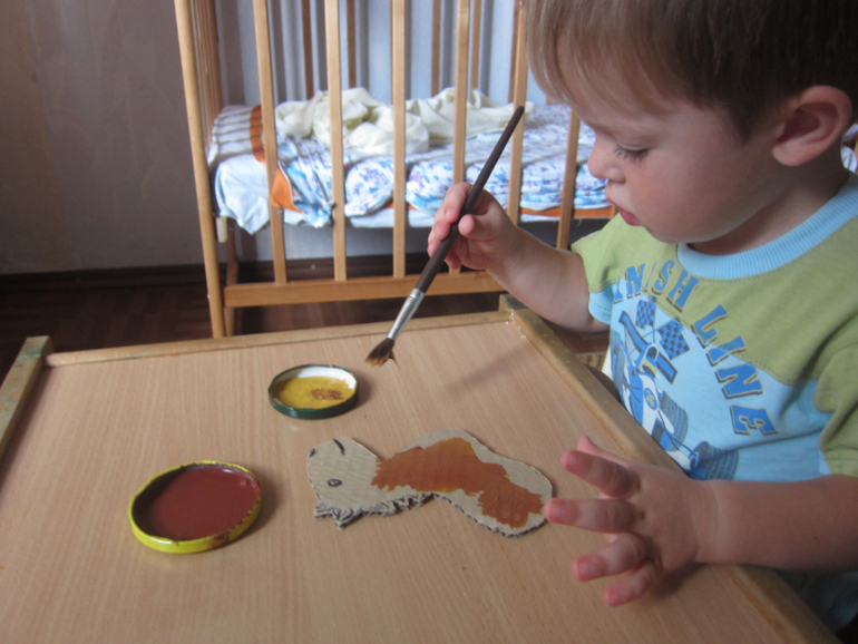 Максим во время раскрашивания решил, что он тоже лошадка и заодно и себя раскрасил основательно!)))))