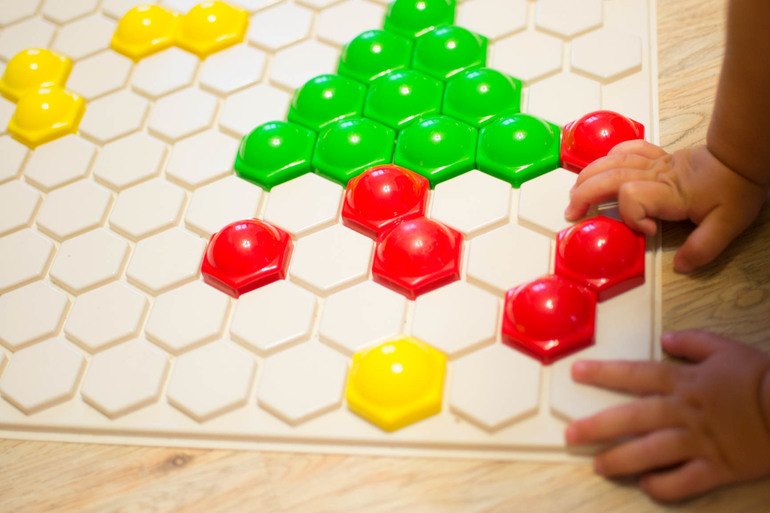 13. Цветовосприятие. Играли в семицветик из школы 7 гномов и мозайку. В семицветике интерес был заполучить все карточки, а вот с мозаикой дела были интересней.