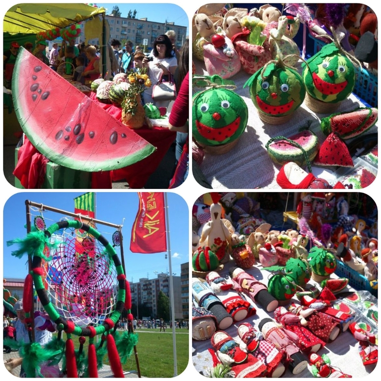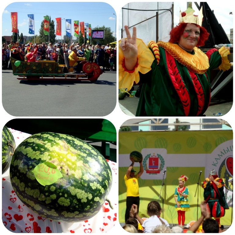Проводиться парад колясок У нас есть даже Арбузный-Король Полосатик 14. Проводятся различные конкурсы - например, на самый большой арбуз. В этом году 1 место - 20,6 кг. В том году 32 гк был арбуз. Тема арбуза даже в сувенирах ручной работы.