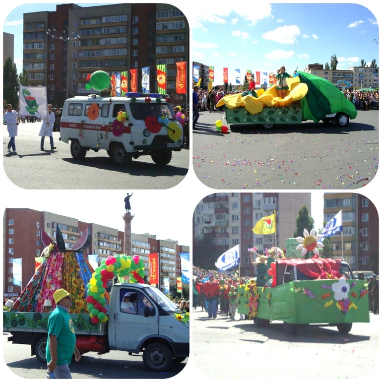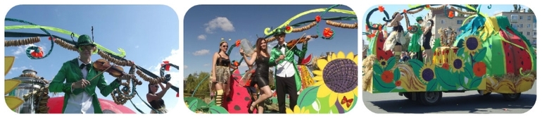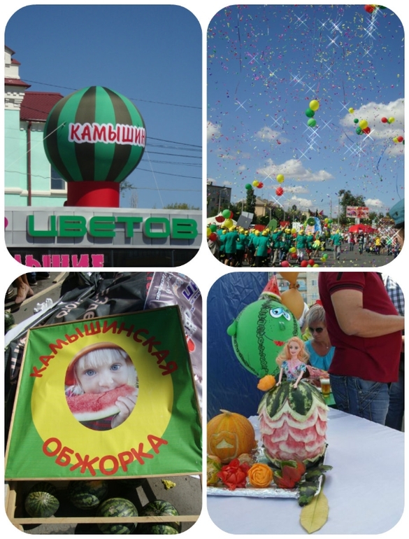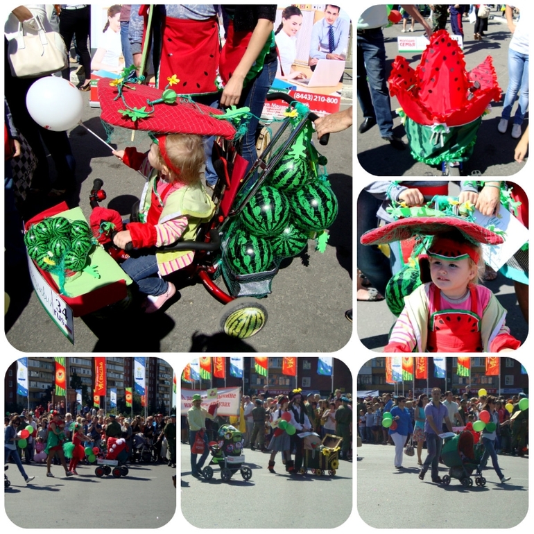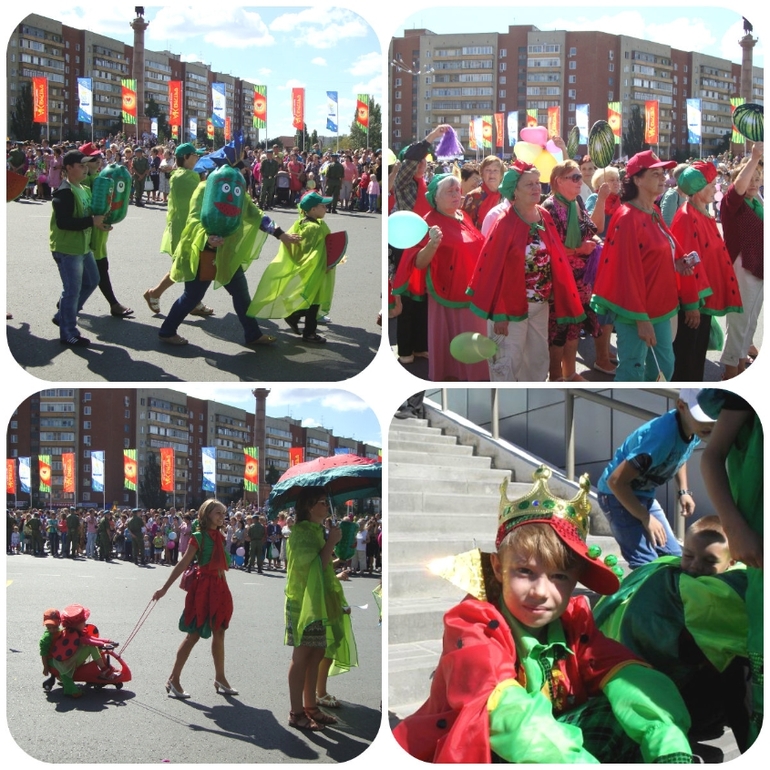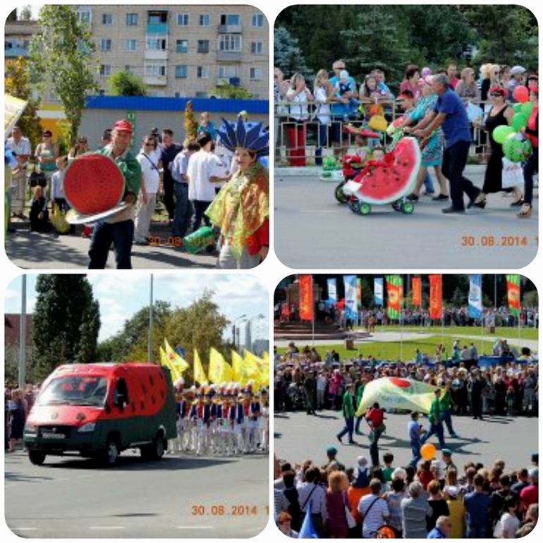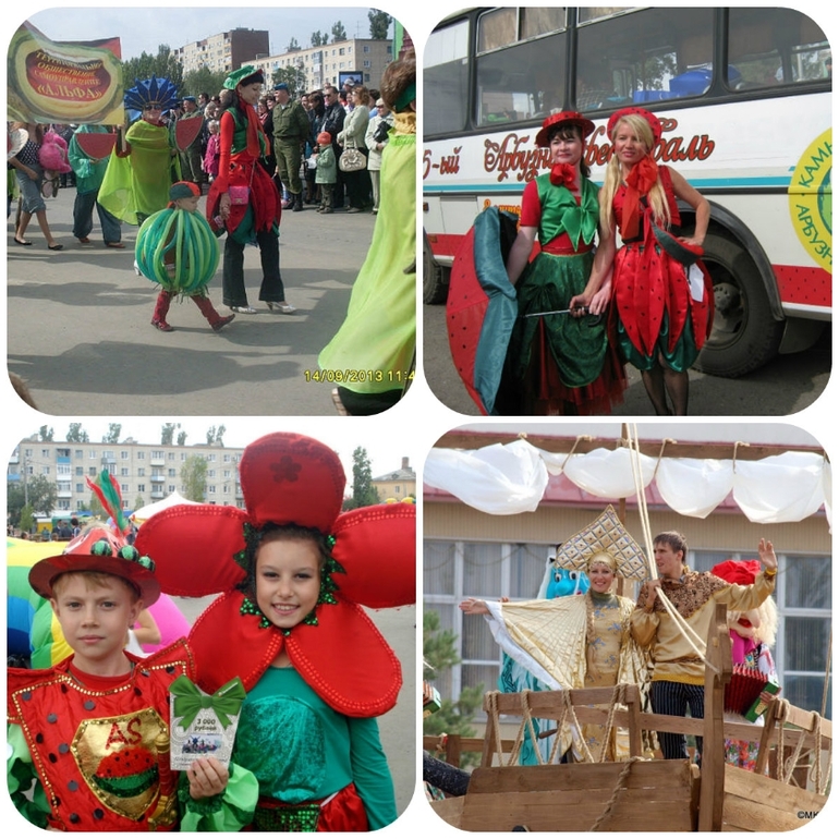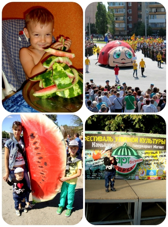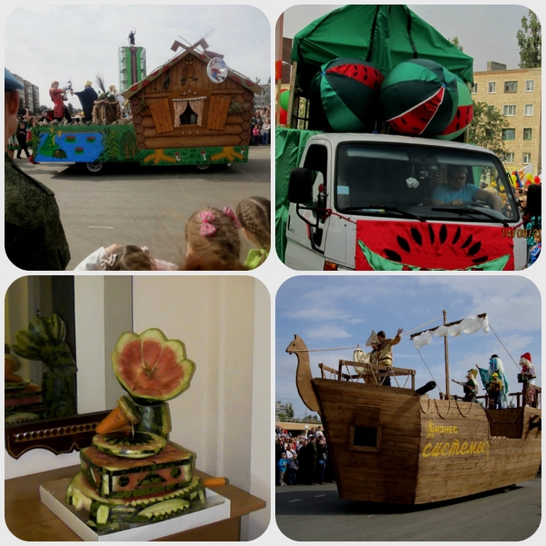 А кульминацией данной темы был ежегодный Камышинский Арбузный фестиваль.Фестиваль традиционно начинается с «Арбузного парада», в котором принимают участия предприятия и учреждения города. Что-то вроде, Аля- Карнавал.. Мы на него попадаем вторая раз. Хотя он проводится уже с 2007 года.