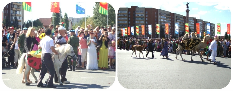 Даже животные принимали участие. Верблюд и лама из приезжего цирка-шапито.