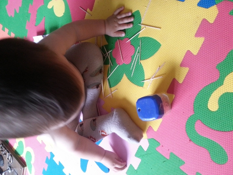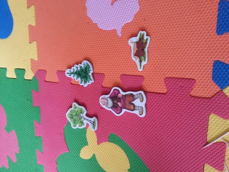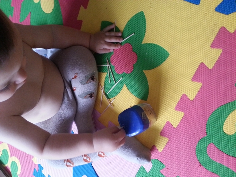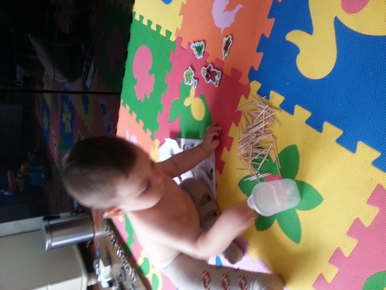 помогали мы дедушке собирать дрова, спичек дома не было, в магазине только зажигалку предложили, поэтому под присмотром мамы использовали зубочистки. История была такая: дедушка пошел в лес, собирать дрова, устал, присел на пенек, а дрова рассыпались. Использовали магнитный театр. Просто собирать дрова Никите не понравилось, но так как мы любим всякие отверстия, складывали их в дырочку. От этого занятия он был в восторге.