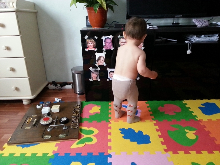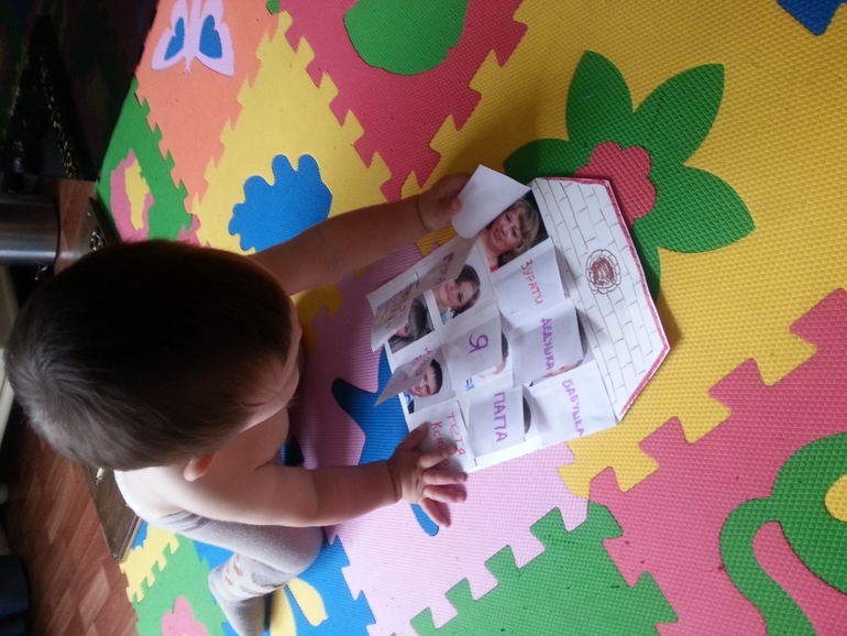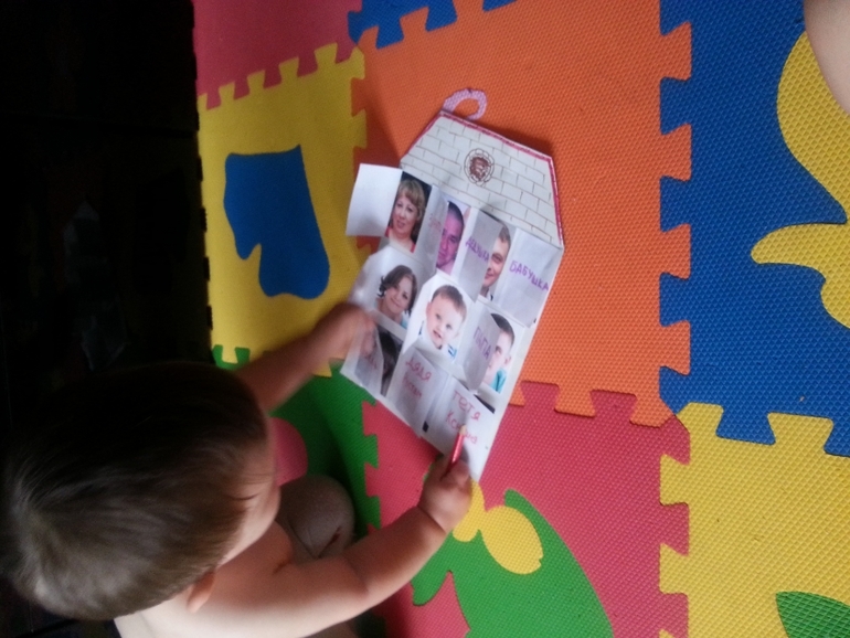 пока безошибочно выбираем только папу, радуемся, глядя на фото, выдираем его и пытаемся убежать. Маму через раз, показывает на меня в основном.