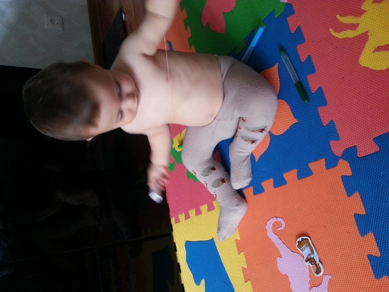 Играли в ладушки, это мы любим)). Пальчиковые игры пока интересуют, только если нацепить на пальчики резинки (массажных колечек у нас нет).