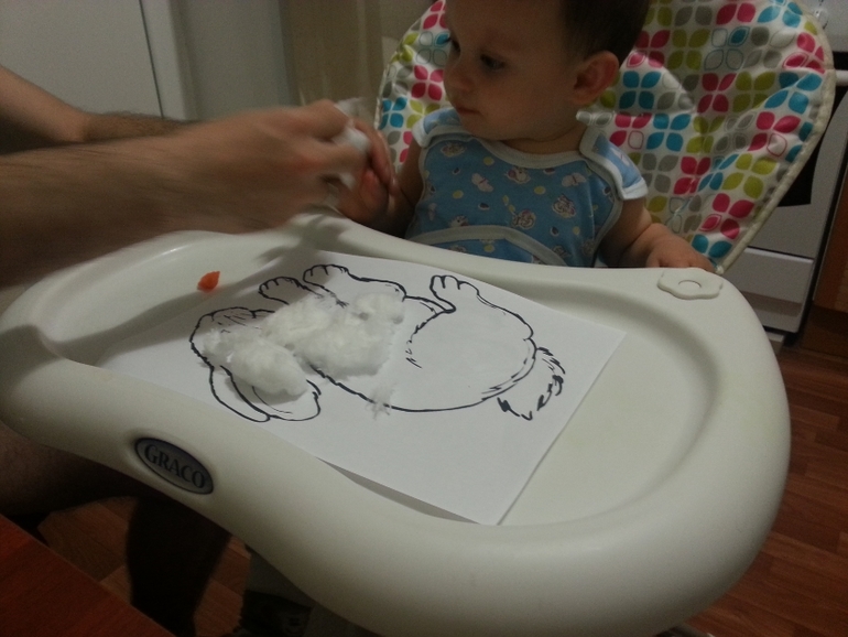 Шубка)))))))))))) Сыночек и лепил и срывал с зайчонка шубку беспощадно. и даже попробовал ее на вкус. Задание ему понравилось, хоть зайку мы больше раздевали, чем одевали.