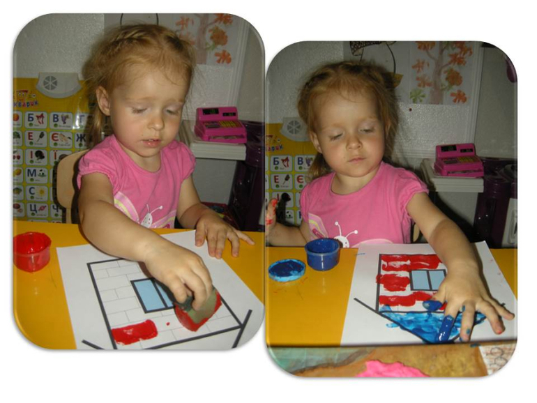 И проштамповала мишке дом прямоугольником и раскрасила крышу