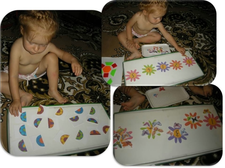 Я до 2-х только количество показывала, если где-то лежит цифра, скорее для себе ложила, Вики вообще внимание на это не обращала, когда уже усвоила цифры 1,2,3, уже смотрит на предметы и говорит, там два или три, начала паралельно со счетом показывать и цифру, уже начали делать подобные упражнения, пока я ее не проверяла, то есть при игре, я просто говорю, вот цветок, на нем цифра 1, вот, стараюсь, чтобы она прроовела пальчиком, потом говорю, что давай посадим одну бабочку, как показывает нам цифра один. Ну как то вот так. Иногда она сама может сказать, один на цифру, но уверености, что она это уже усвоила у меня нет, но я и не прооверяю, я даю эти знания, а они сами себы проявят, как и цвета, как и количество, все со временем, она сама выдает))