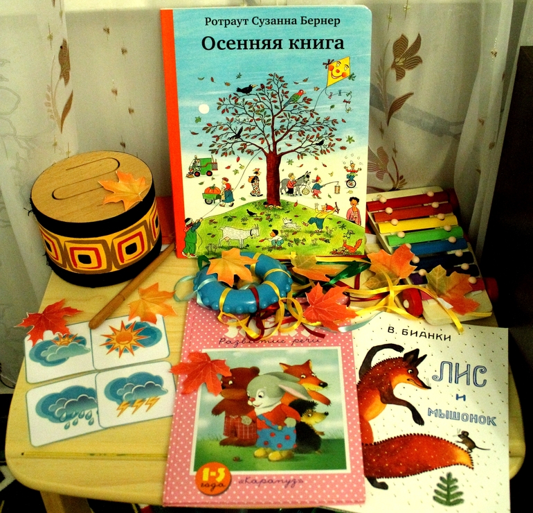 Разумеется читали книги,на повестке этой недели наша самая любимая Осенняя книга Бернер, Лис и мышонок, Зайка.В течении дня собирали лото самодельное, там есть парочка осенних персонажей,но на днях хочу сделать специальное осеннее лото. Танцевали под осенние песенки. А так в течении всего дня у нас звучала музыка Чайковского "Времена года. Октябрь". Кружились как осенние листочки. Делали мини зарядку. Со словами: