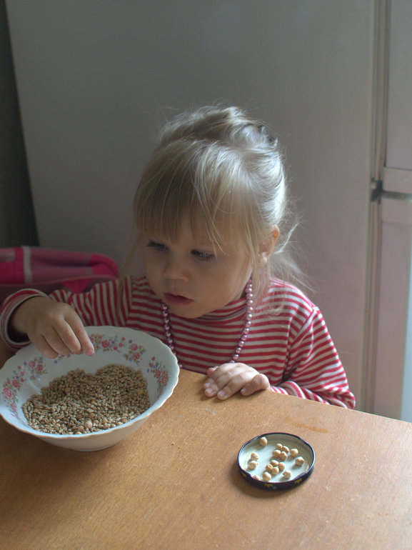 Отделяем зерна от плевел:)) Горох от пшеницы (сенсорика, пинцетный захват, сортировка - все до кучи:)