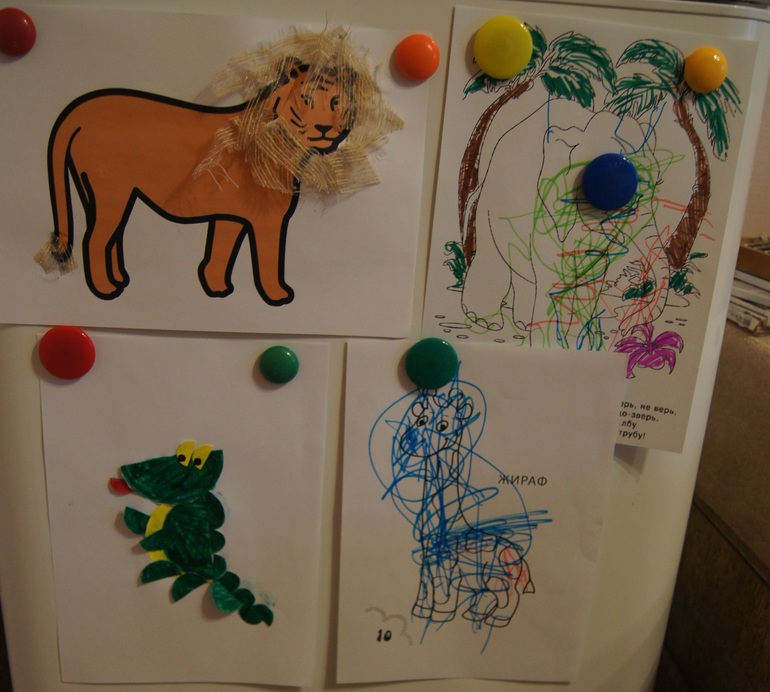 Вспоминали с Алисой, как ездили в зоопарк, видели там льва со львицей, зебру, обезьянок, подкрепили фото и видео с телефона.