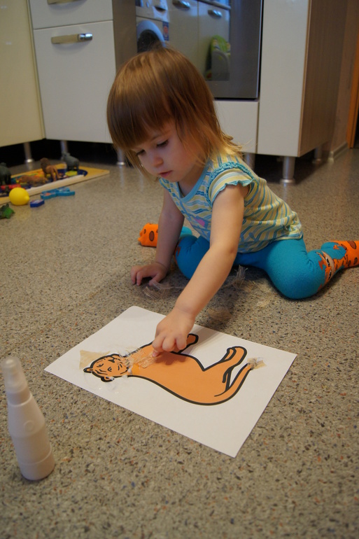 Делали аппликацию Лев. Алиса решила, что это ни какой не тигр, а лев. Ну, а какой же лев без гривы и кисточки на хвосте.