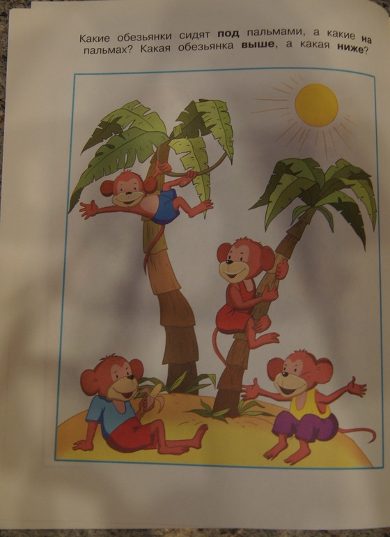 Поглядели картину с попугаями на пальмах, проговорили где много, где мало попугаев, посчитали их и решили накормить финиками.