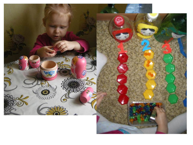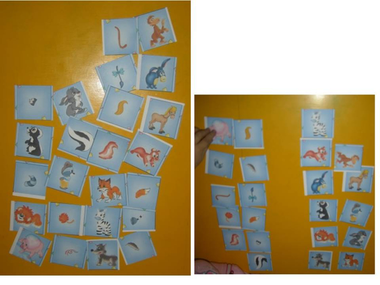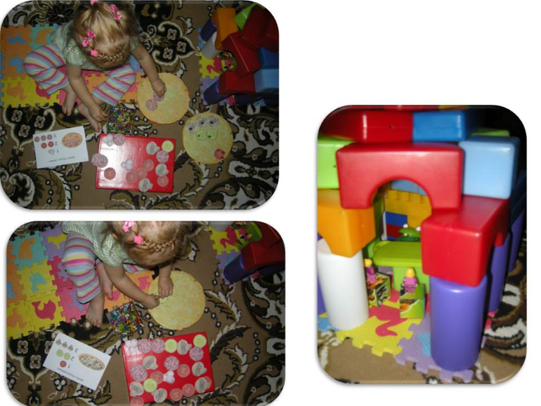 Это еще игры какого-то вечера, от большого к маленькому, но делаем с двумя картинками. С набора Чуня подбираем фигурки, лото с крышечек, мы о нем уже забыли.