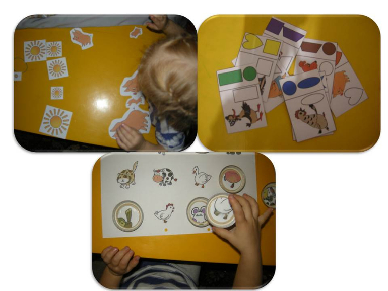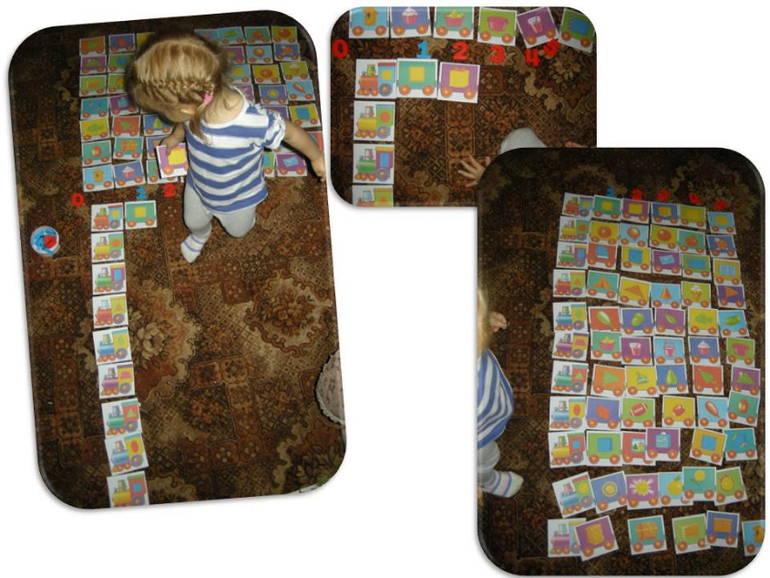 А эту игру, я распечатала давно, но поиграли лишь на этой недельке. провоз состоит с вагонов, нужно собрать по форме и по цвету предметы. Играли долго и весело с музыкой и танцами поэтому разложили все паровозики и не устали)) За одно учили и порядок цифр, первый, второй и т.д. Кстати Вика довольно хорошо с этими словами управляется, вон вторая или первая, но пока дальше не слышала)