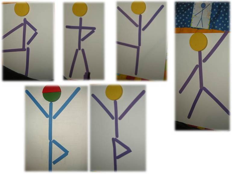 Захотела танцевать Вика,я предложила изучить позы. поиграли с палочками, я у себя раскладывала (фото с синими палочками, Вика у себя. Очень ей понравилось. с палочками любит сейчас играть.