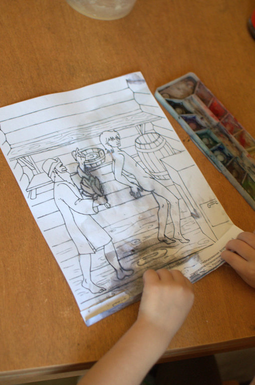 Почитали стихотворение "Я построю дом с трубою" (там есть фрагмент о бане), очень мне нравятся там иллюстрации.