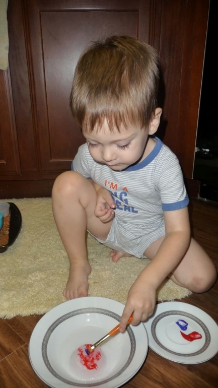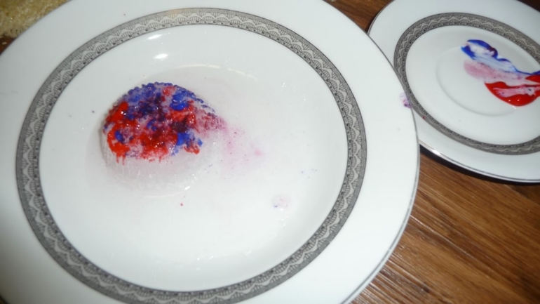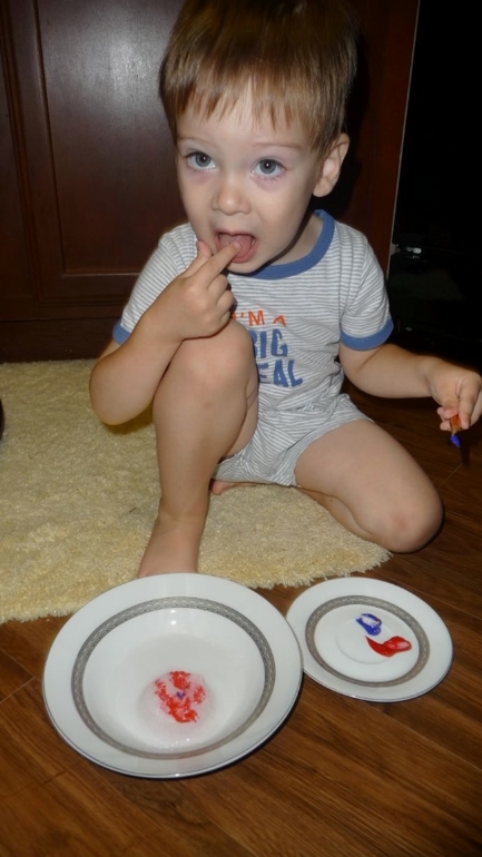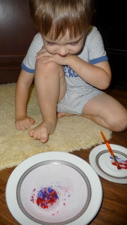 После этого у нас начался художественный процесс. Рисовали на льду и посыпали это творение солью. Рисовать ребёнку понравилось, а вот эффекта от соли не получилось (думаю, краска была слишком густая). Зато в нашем лексиконе появилось новое слово "солька". В конце наше творение отправилось в свободное плавание по тёплой водичке.