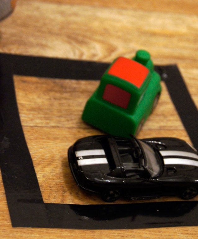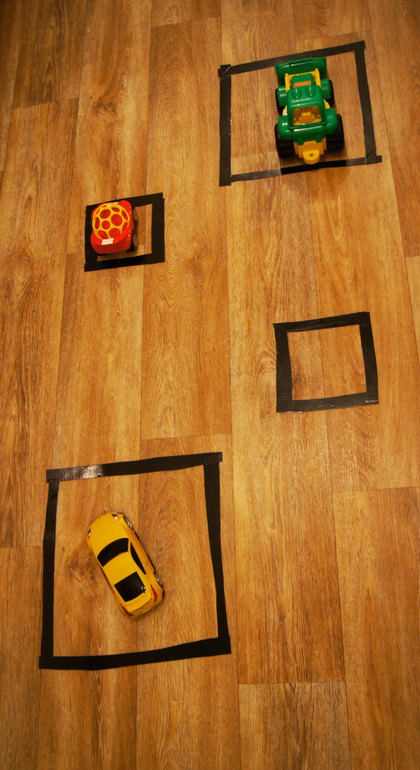 Потом решили машинки загонять в "гаражи", большие в большие "гаражи", а маленькие соответственно в маленькие, вот так это выглядело.