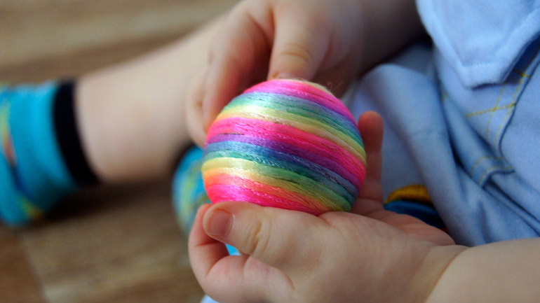 Сортировали долго, засовывали в дырки, обратно вытаскивали. Да еще к нам и кошка присоединилась, воровала у нас маленькие мячики, а Тимофей за ней бегал, обратно отвоевывал, а потом ей же кидал=) Кошка у нас практически во всех играх участвует.
