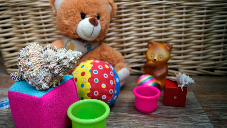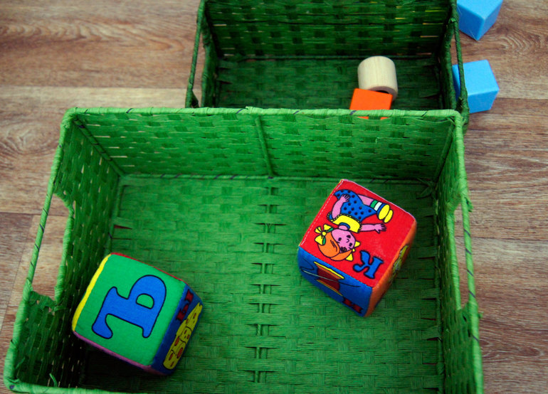 Потом попробовали разложить по корзинкам кубики, большие и маленькие: