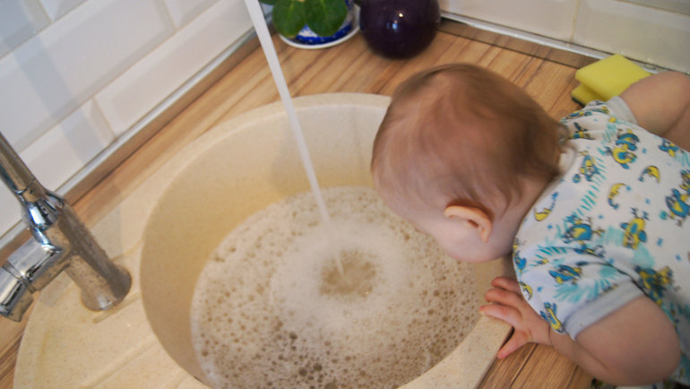 Это самый грязный, но самый наверное интересный для сына день. Хотя начинался он с наведения чистоты. Мы помыли посуду.