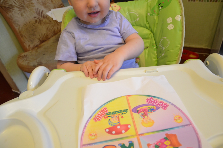 Затем я дала сыну часы и мы рассмотрели картинки,проговорили,что делаем утром,днем и вечером