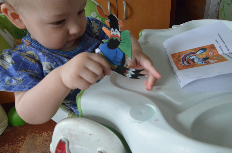 Начали мы свои занятия с Сороки,так как накануне гуляли и Костя отчетливо говорил на птиц КАА-КААР. Сначала мы познакомились с сорокой и ее детьми.