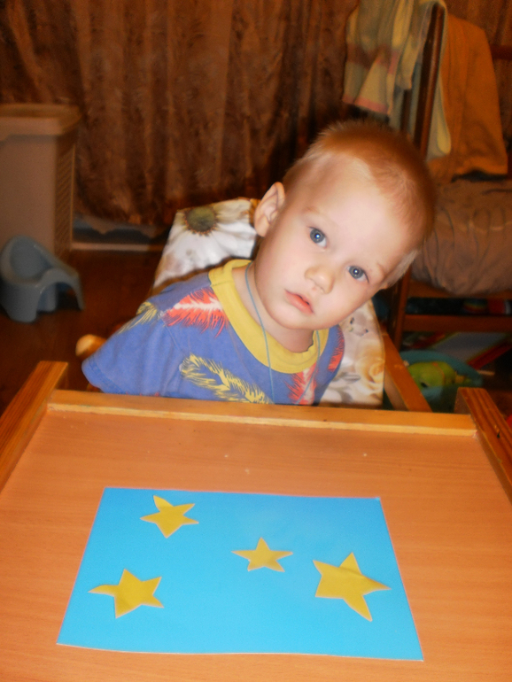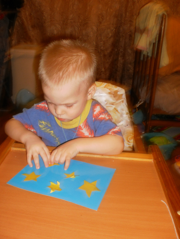 Вечером сделали звездное небо, Макс всё пытался оторвать звезды от картона))