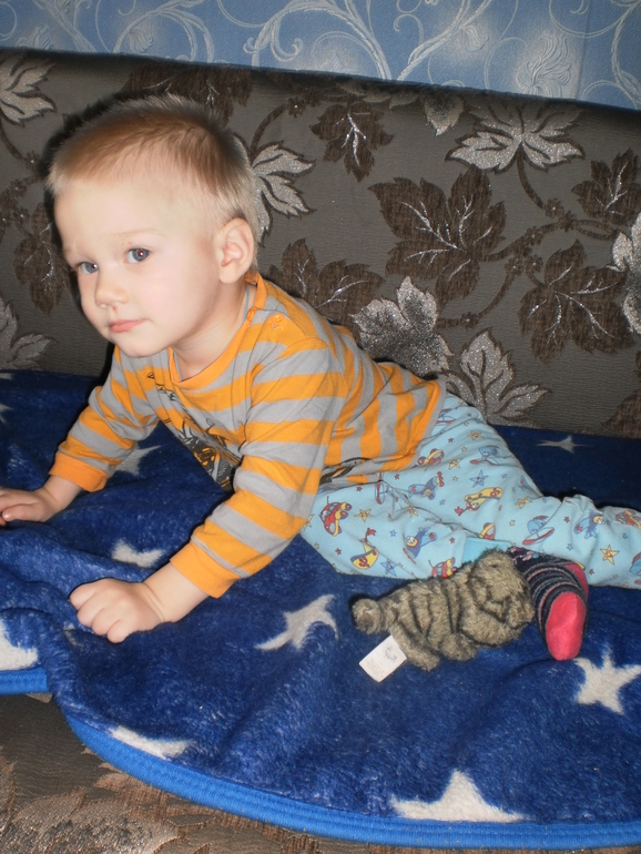 Утром пришел к нам в гости котенок. Показал где глазки, носик, ушки, прочитали потешку. Максимка знает, что с утра мы чистим зубы, переодеваемся из пижамы в домашнюю одежду и кушаем кашу.