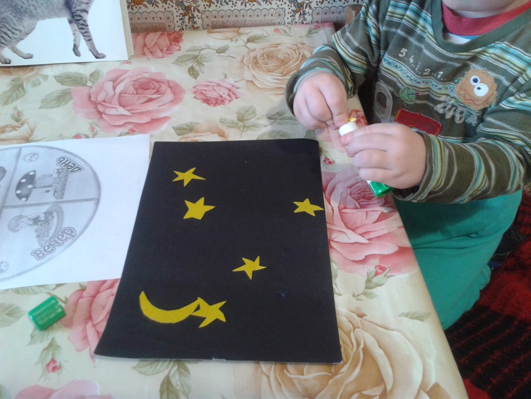 Аппликация звезды тоже была очень хорошо принята сынулей, правда в конце он все отлепил очень старательно.