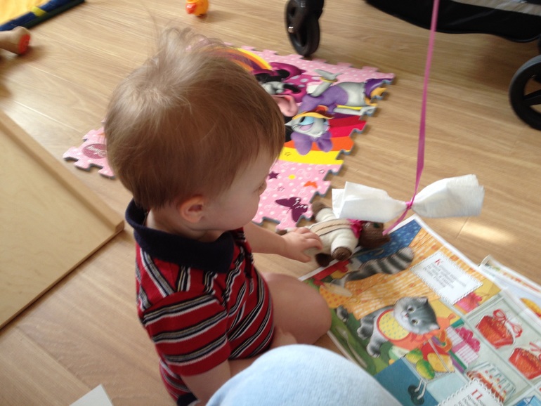 Потом достали книжку (уже изрядно потрепанную) котик коток от шсг и начали читать потешки, потом к нам пришла кошечка и мы повторили, где у котика глазки, носик, ротик.